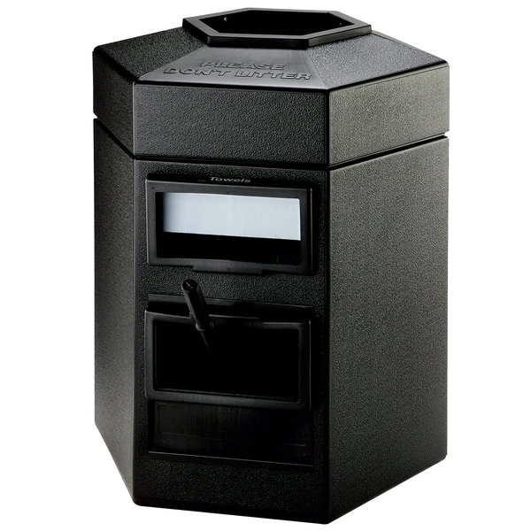 Commercial Zone 755201 35 Gallon Islander Series Black Cayman Hexagonal Waste Container With Paper Towel Dispenser, Squeegee, And Windshield Wash Station