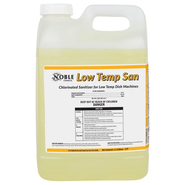 Noble Chemical 2.5 Gallon / 320 Oz. Low Temp San Dish Washing Machine Sanitizer – 2/Case
